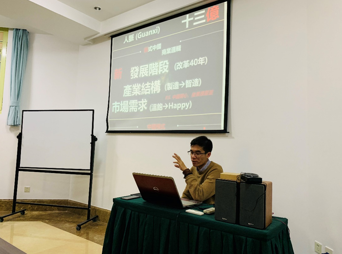 李国辉是国际关系学院硕士毕业的学长,来自香港,目前在北京的文化产业创业。他向同学们介绍了中国内地与港澳台地区营商环境的差异,分享了自己对在内地商业环境的独到看法。他还呼吁同学们思考作为港澳台学生有哪些优势,善用自己的优势。