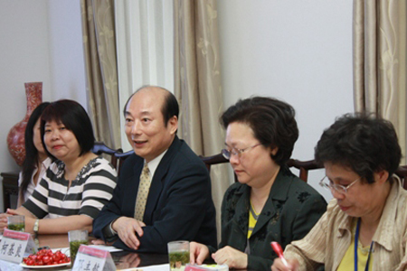 座谈会上,潘庆德代表北京大学师生对台湾访问团的到来表示欢迎,并介绍了北京大学与台湾在各界、各部门的交流情况。他认为,台湾在文化产业建设方面有比大陆更为丰富的经验,希望台湾专家、专管的到访能给大陆的文化产业的发展提供更多参考。