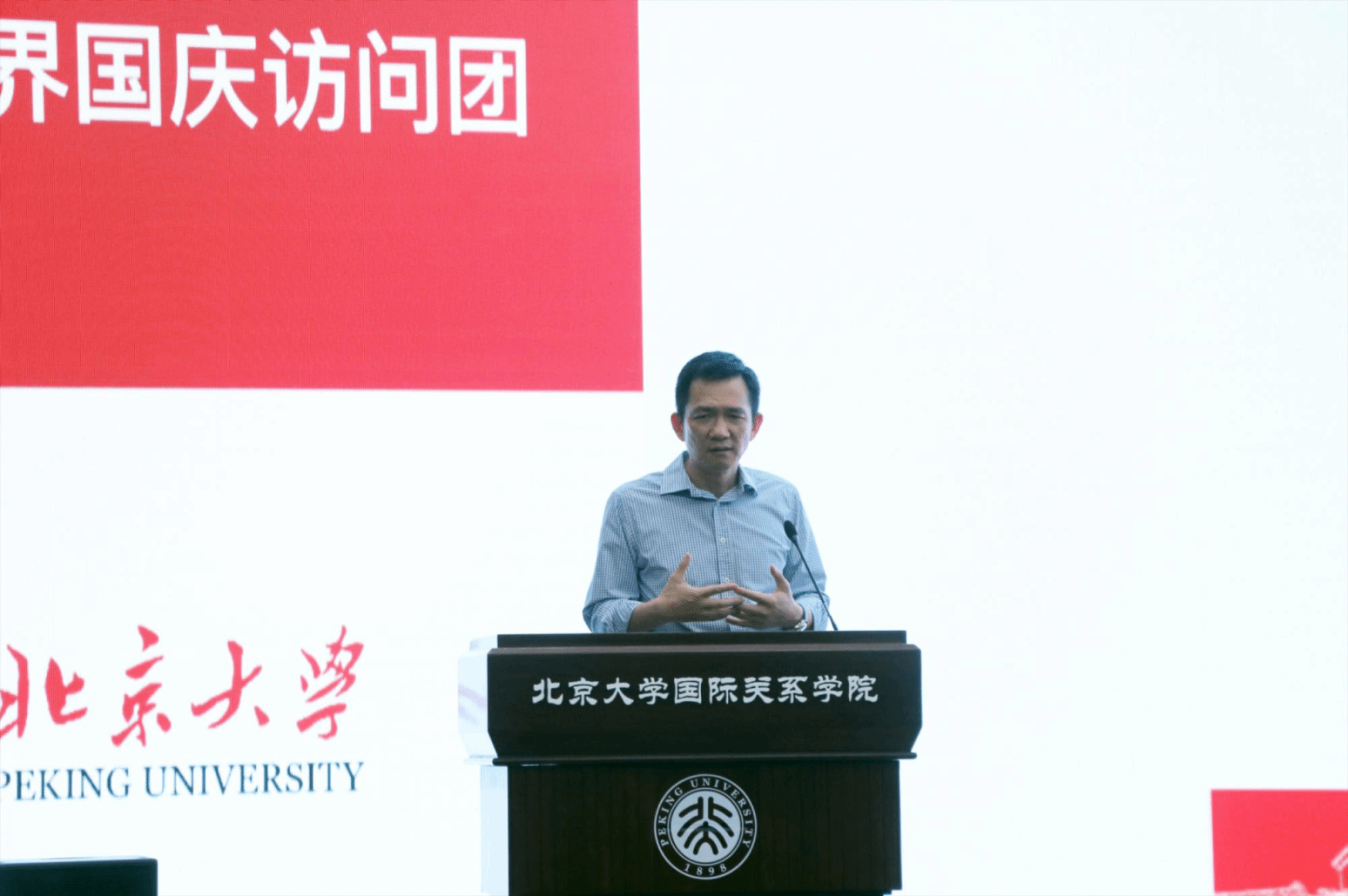 随后,访问团前往国际关系学院秋林报告厅,聆听北京大学国家发展研究院院长姚洋教授以“中国新叙事”为主题的讲座。姚洋教授以中国现代化进程为切入点,从历史背景、中西差异、社会革命、思想理论等方面探讨了中国共产党与中国现代化之间的关系。