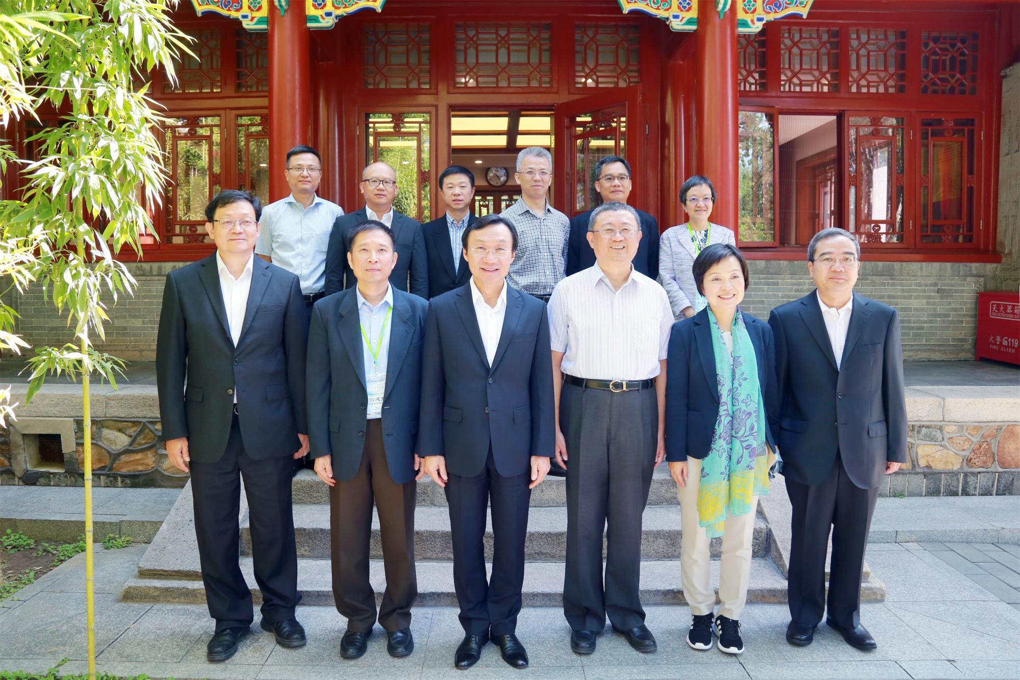 9月26日上午,澳门社会文化司司长谭俊荣、香港教育局副局长蔡若莲率领“港澳教育界国庆访问团”一行210余人访问北京大学。校务委员会副主任王杰在临湖轩会见访团嘉宾代表。