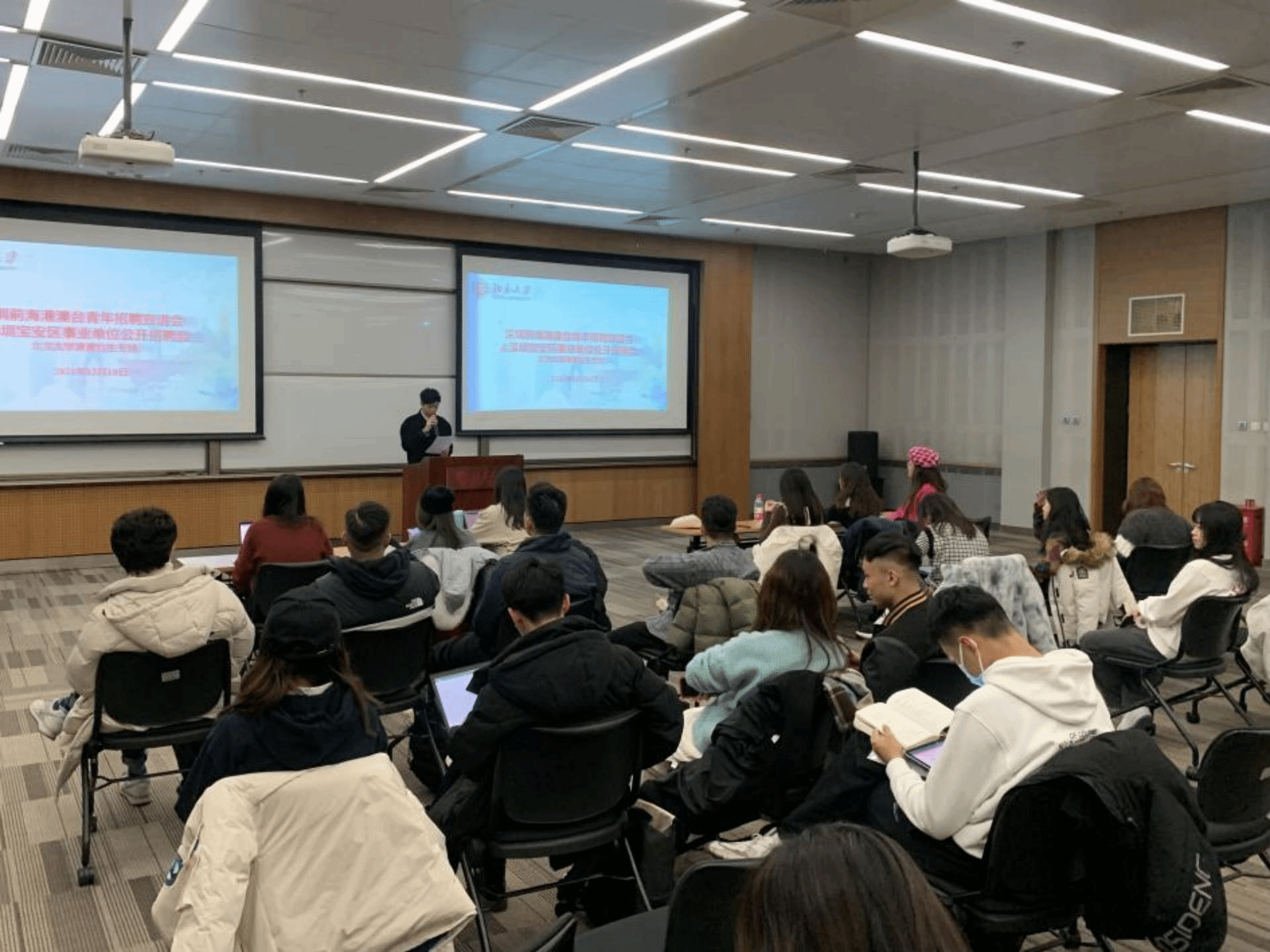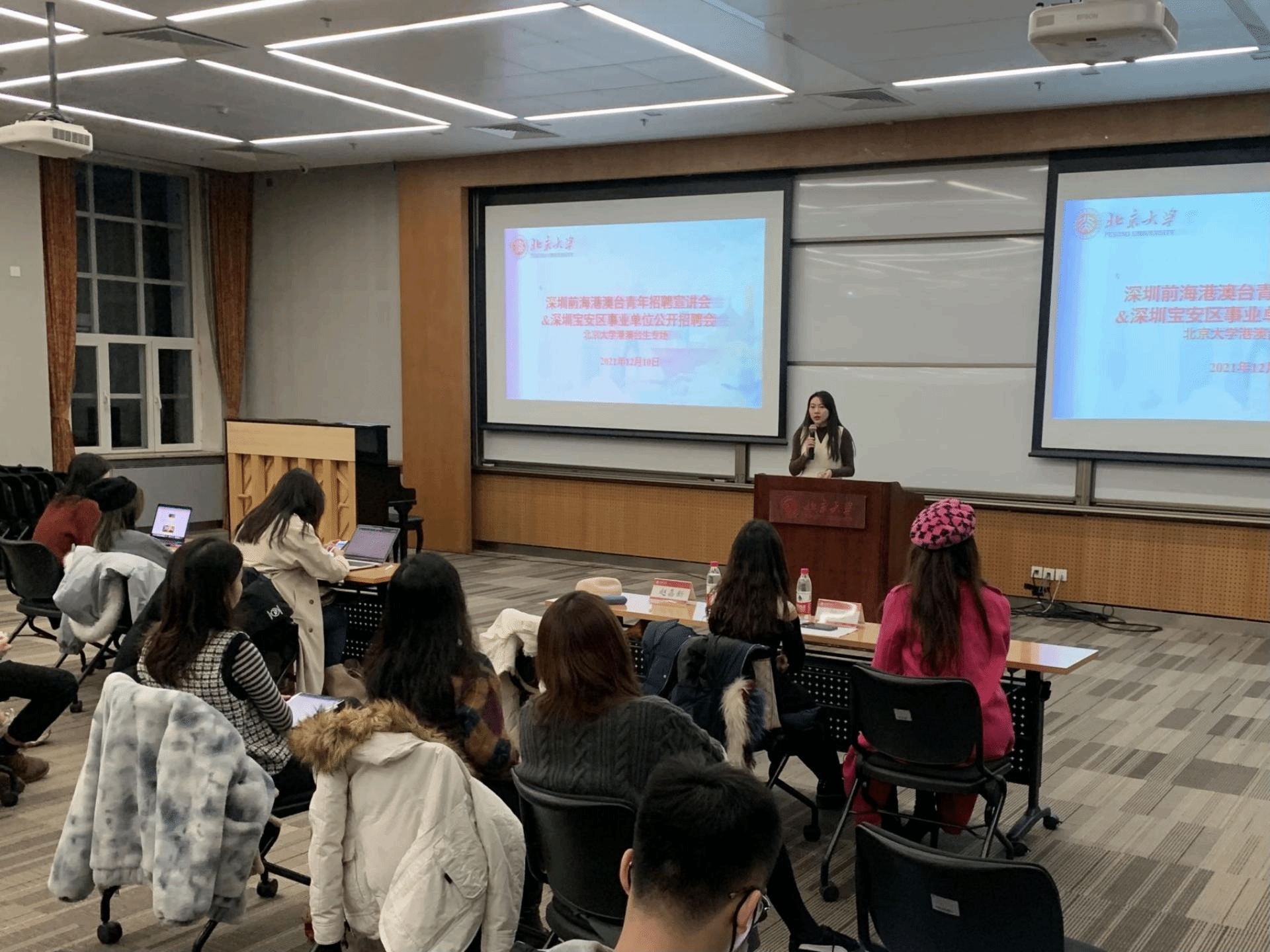 12月10日下午,港澳台办公室为辅导北大在校港澳台学生实习就业而开展的“未名启航”职业规划之“深圳前海港澳台青年招聘暨宝安区事业单位公开招聘宣讲会港澳台专场”,在光华楼203多功能厅举行。