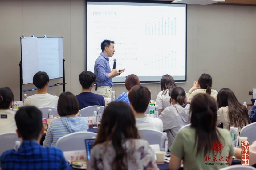 现场调研之后,“读懂中国”项目组学术导师、光华管理学院张影教授带领同学们回归课堂,以“云南咖啡产业的突围与迭代”为题,再次与同学们深入探讨云南咖啡产业的发展。张影老师从咖啡的生物学特点谈起,讲授了中国咖啡的生产与消费、产业链、产品结构以及主要贸易产品型态等内容,并结合本地特征梳理了云南咖啡的发展与现状、分析了加工工业发展水平、品牌建设水平以及人才结构对云南咖啡产业的影响。张影老师提出,云南咖啡在未来的发展路径上必须“稳住基本盘”、“打好特色牌”。实战经验分享环节,几位咖啡行业专家也亲临授课现场,分享品牌故事、创业历程与企业发展思路,让同学们对当下的咖啡市场产生了更深刻的理解。